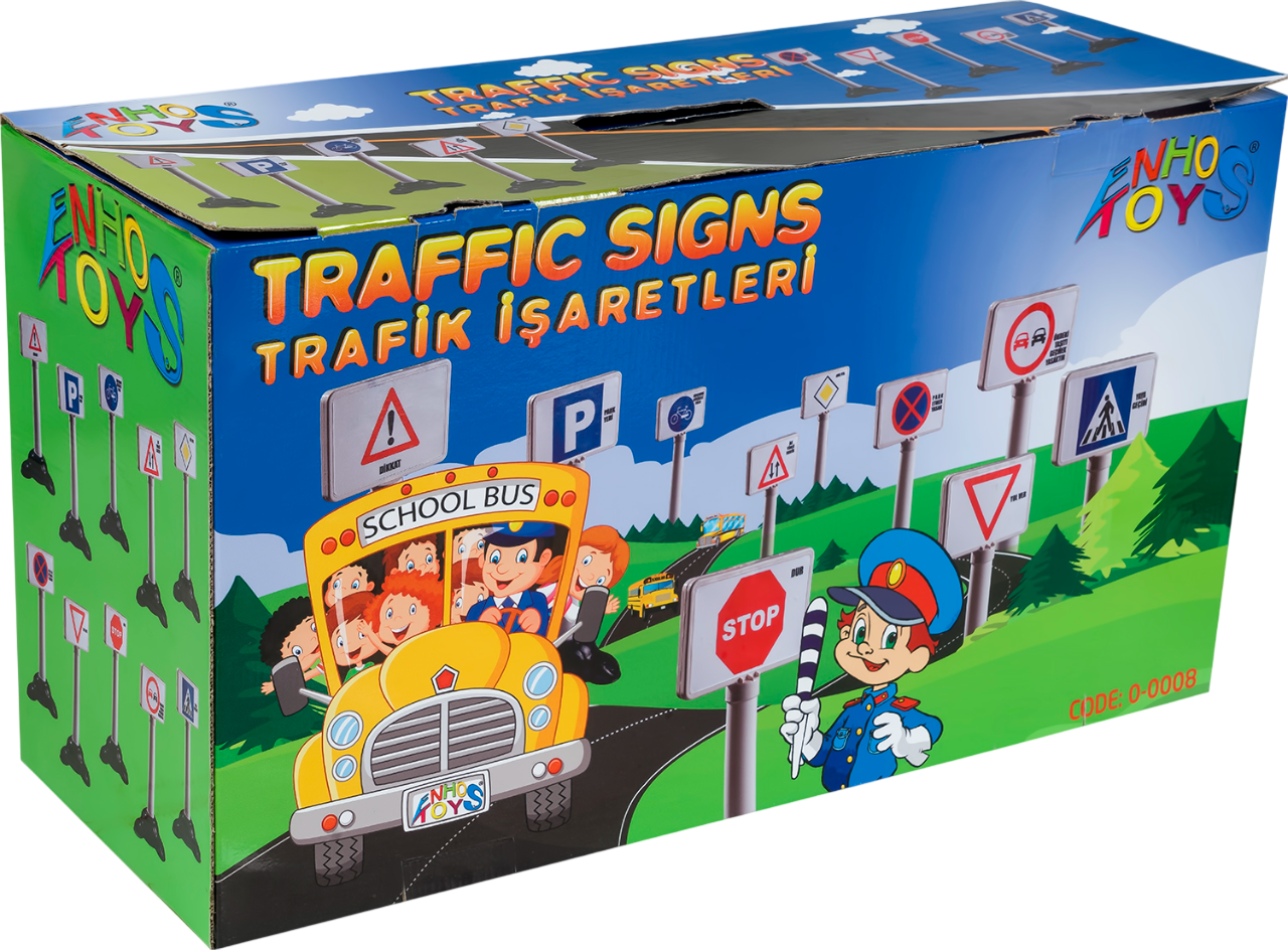 ENHOŞ TOYS Trafik Set çocukların trafik işaretlerini tanımalarına ve anlamalarına yardımcı olurken, aynı zamanda oyun yoluyla öğrenmelerini sağlar.Birden fazla çocuğun aynı anda oynamasına elverişlidir ve dış mekanda kullanıma uygundur. Anaokulları için